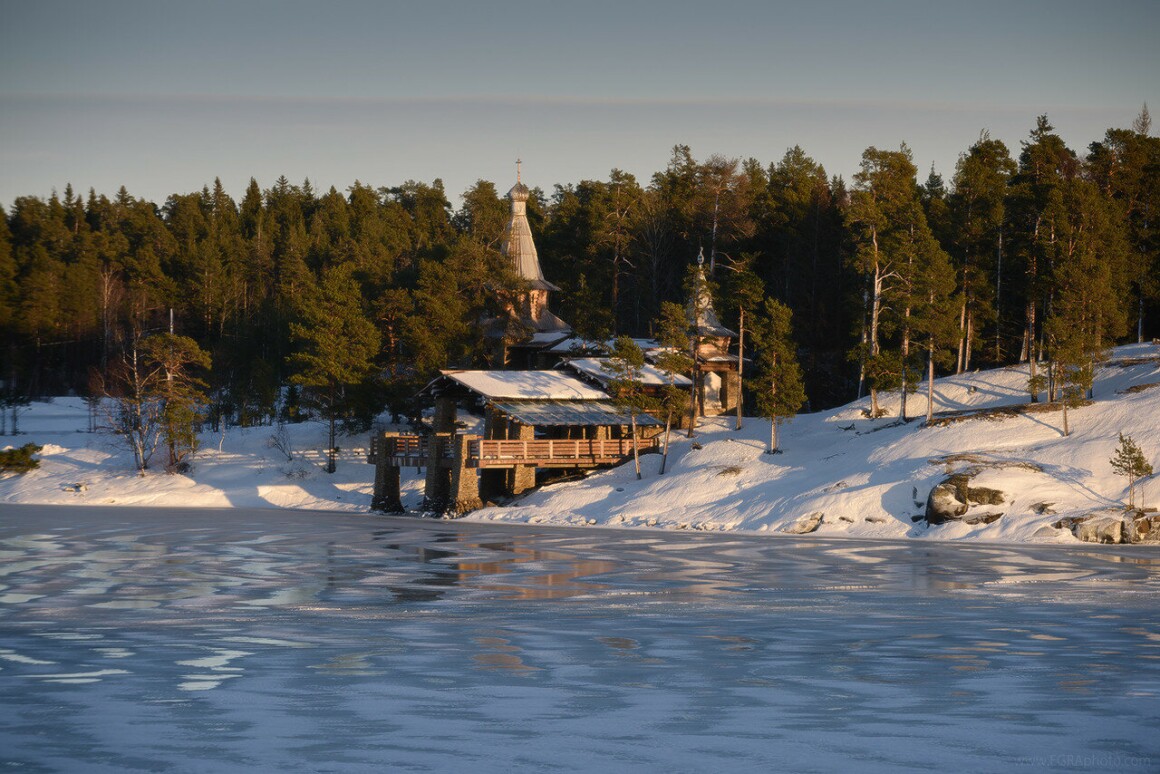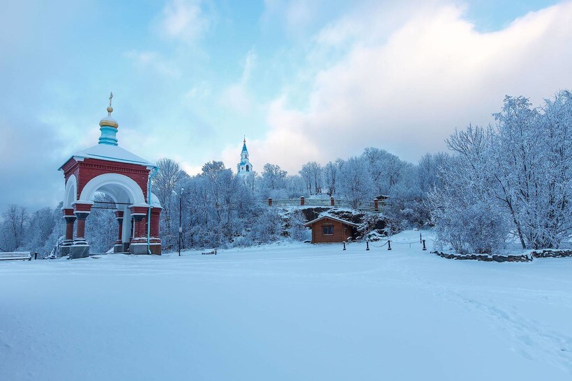 Зимой Валаам особенно красив: воздух прозрачен, а снег подчёркивает архитектуру обители.